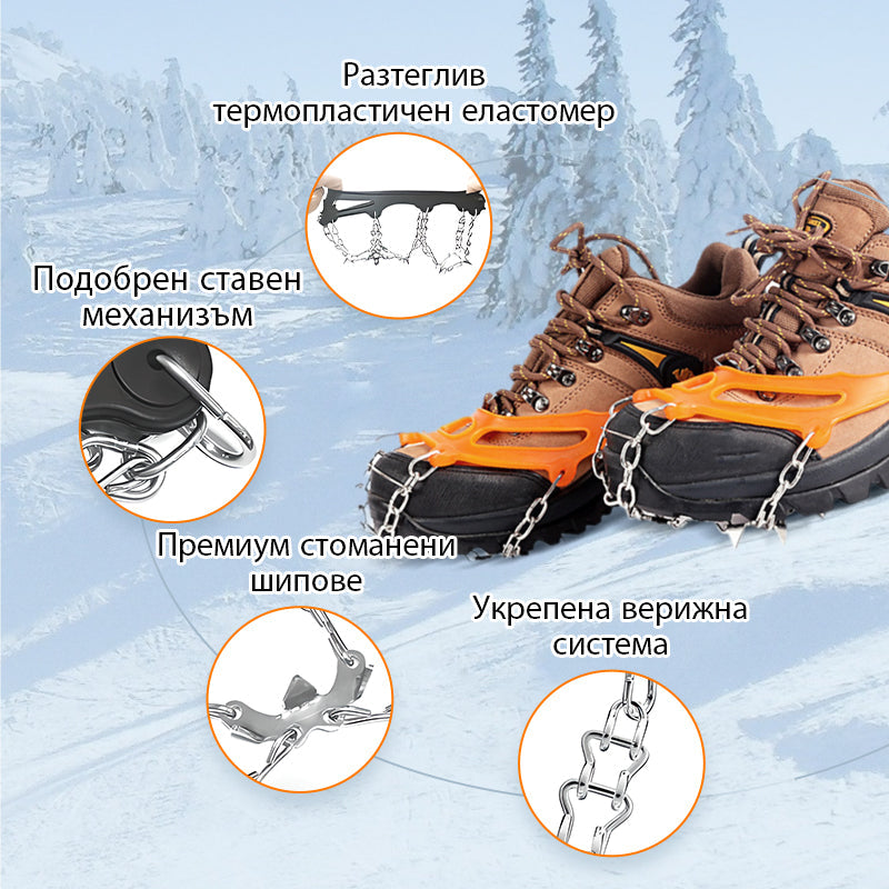 🧗 Противоплъзгащи шипове за обувки и ботуши за открито | За сигурност на лед, сняг и хлъзгави повърхности