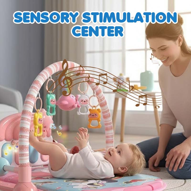 ИГРАЧКИ ЗА СЕНЗОРНО РАЗВИТИЕ – Това е повече от просто игрална постелка, тя разполага с висящи играчки, светлини и звуци, които стимулират зрението, слуха и осезанието, ускорявайки развитието на ключови когнитивни и моторни умения в ранните етапи на развитие.