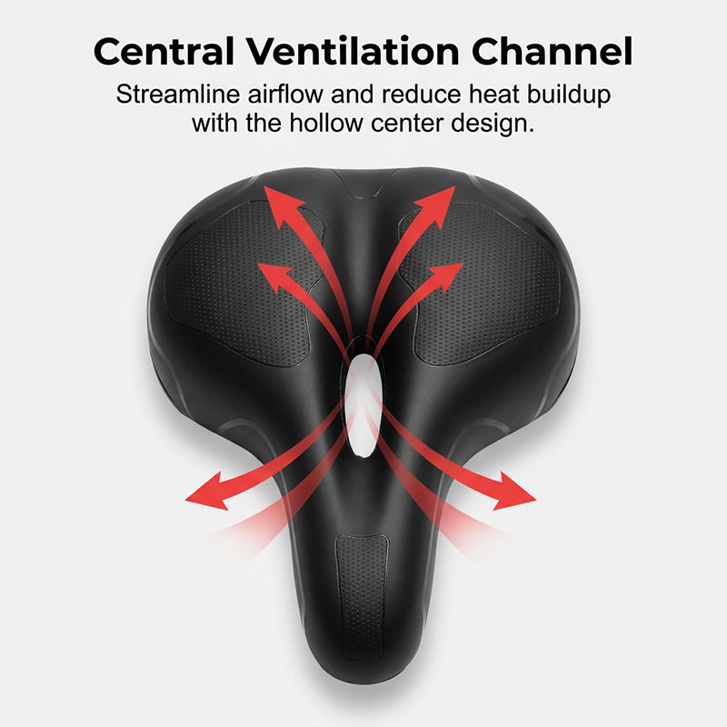 ЕРГОНОМИЧЕН ШИРОК ДИЗАЙН - Разпределя тежестта равномерно, за да намали натиска върху чувствителните зони. Осигурява отлична опора за седалищните кости, гарантирайки комфортно и безболезнено каране на всякакъв терен, независимо дали разстоянието е късо или дълго.