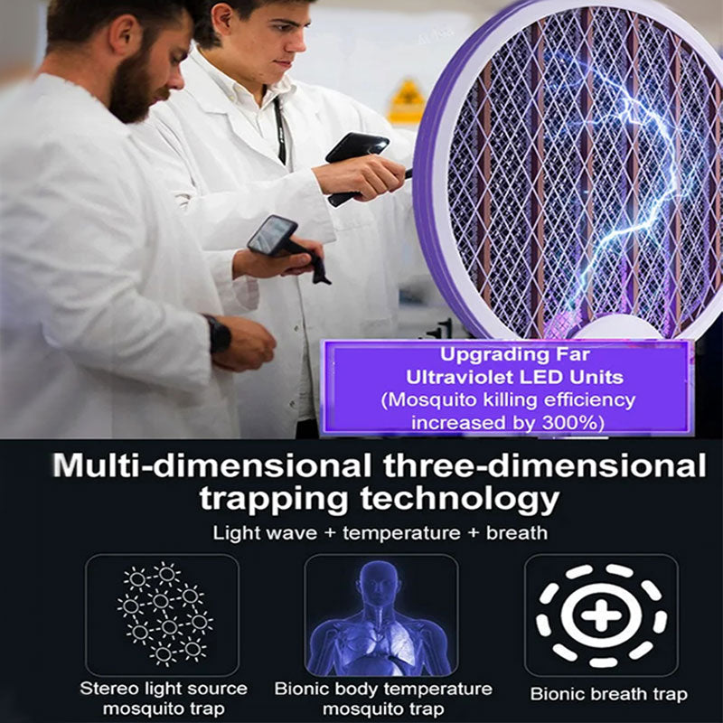 PURPLE LIGHT MOSQUITO TRAPPING - Utilizing advanced insect attraction technology, the swatter emits a purple light that specifically targets mosquitoes and draws them towards the device. This innovative feature enhances trapping efficiency, ensuring a higher success rate in eliminating flying pests.