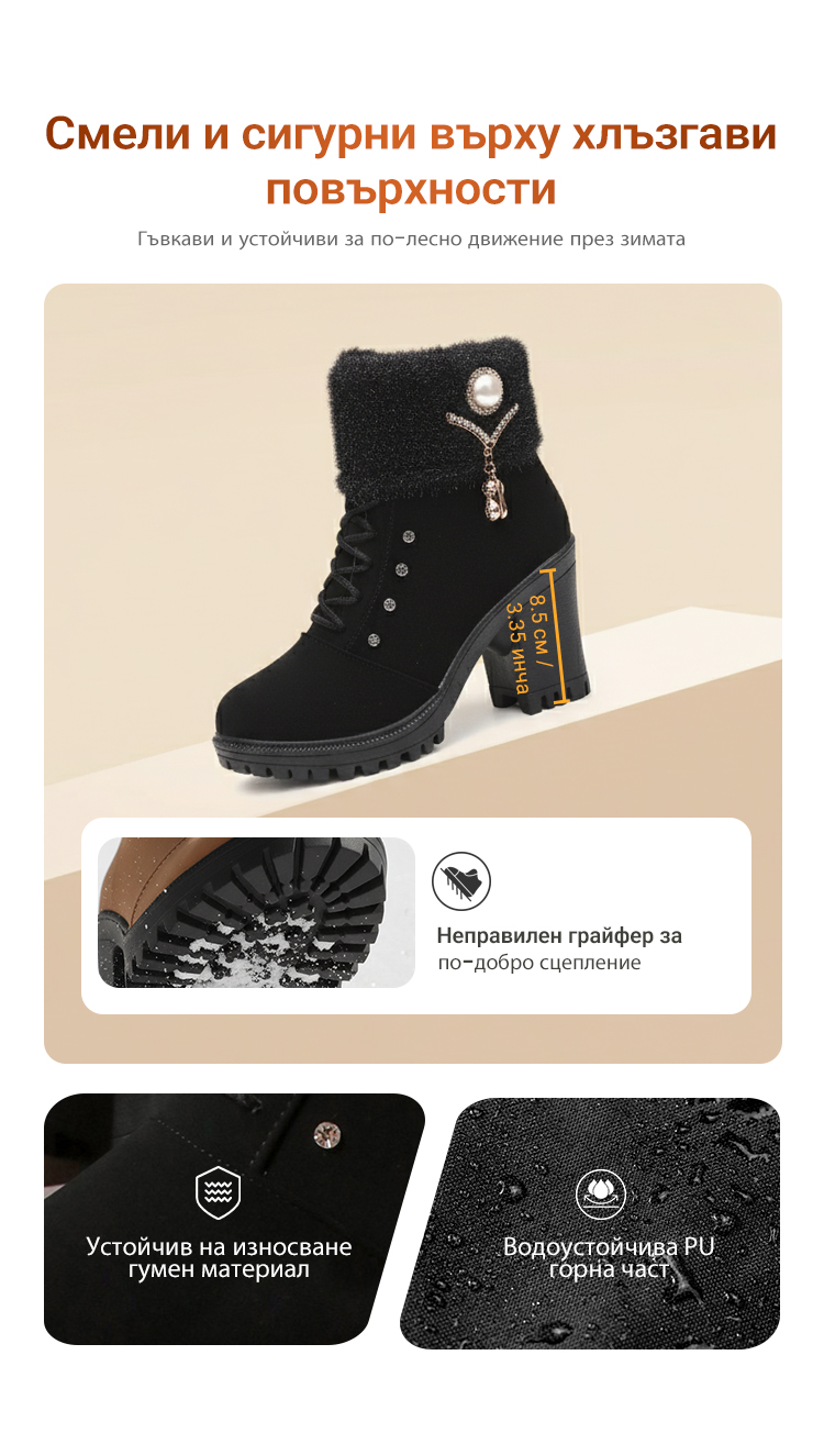 👢 Дамски дебели топли ботуши с дебел ток | Удобни и модерни за студените дни