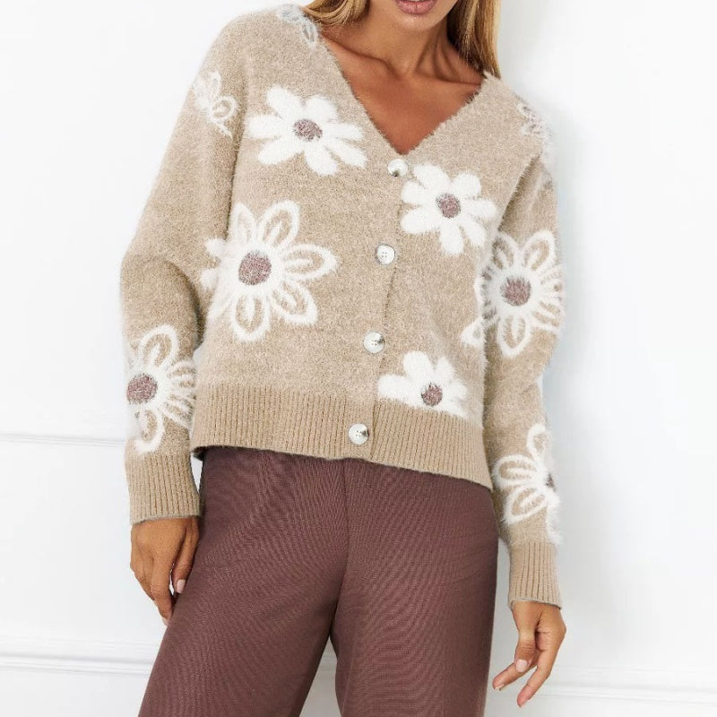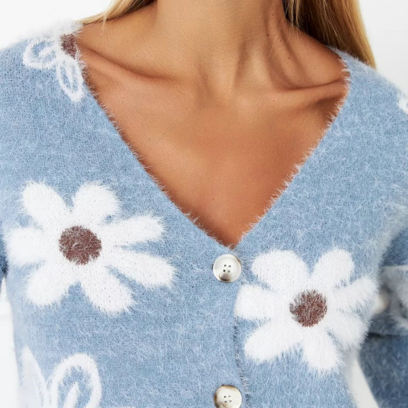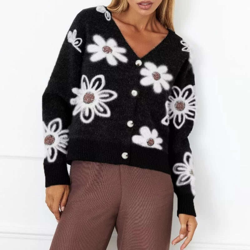 Съдържание на опаковката: 1×Елегантен флорален пуловер с V-образна вратовръзка