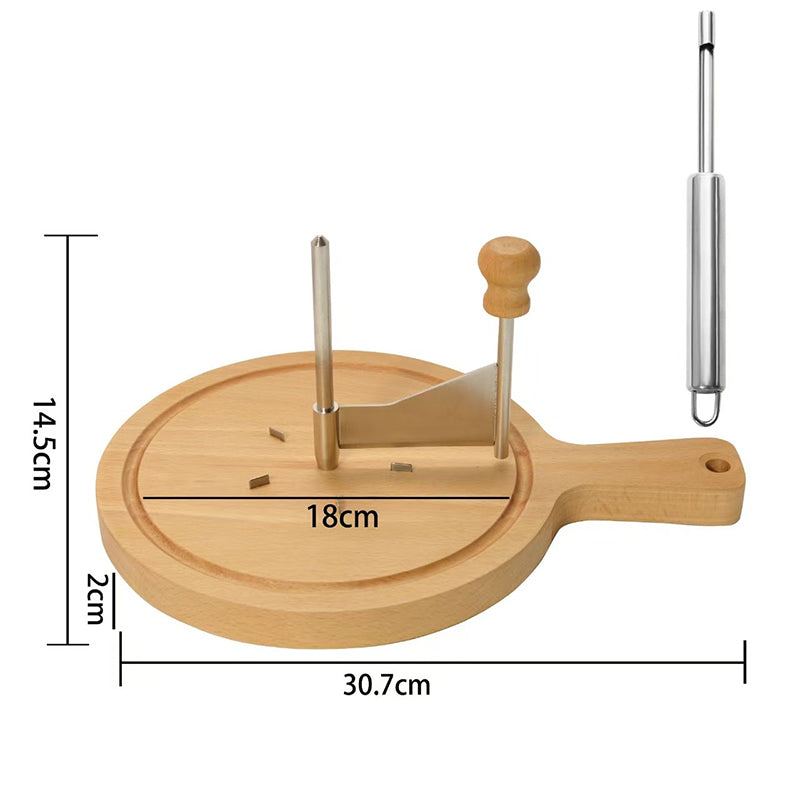 ЕЛЕГАНТНА ДЪРВЕНА ОСНОВА: Основата от естествено дърво осигурява стабилна, неплъзгаща се основа за нарязване. Тя служи и като изискана дъска за сервиране, придавайки рустикален чар на вашата кухня или трапезна маса.