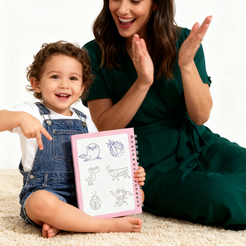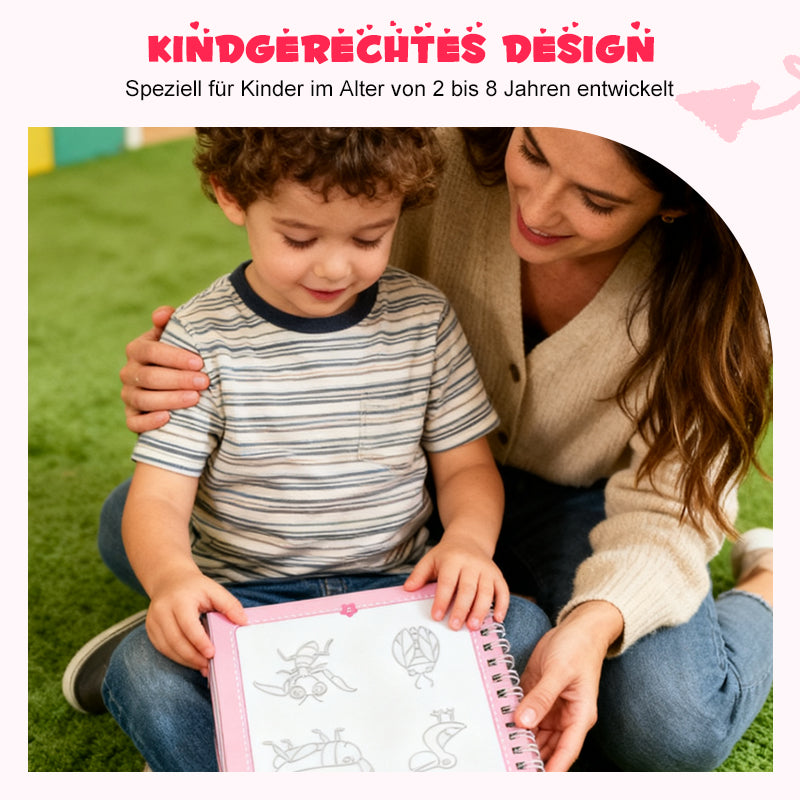 ПОВТОРНО ИГРАНЕ: Благодарение на включения магически химикал, нарисуваните линии изчезват сами след кратко време. Това позволява на децата да практикуват отново и отново без да се изразходва хартия – идеално за устойчиво и непрекъснато учене.