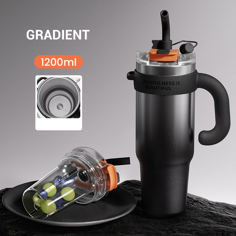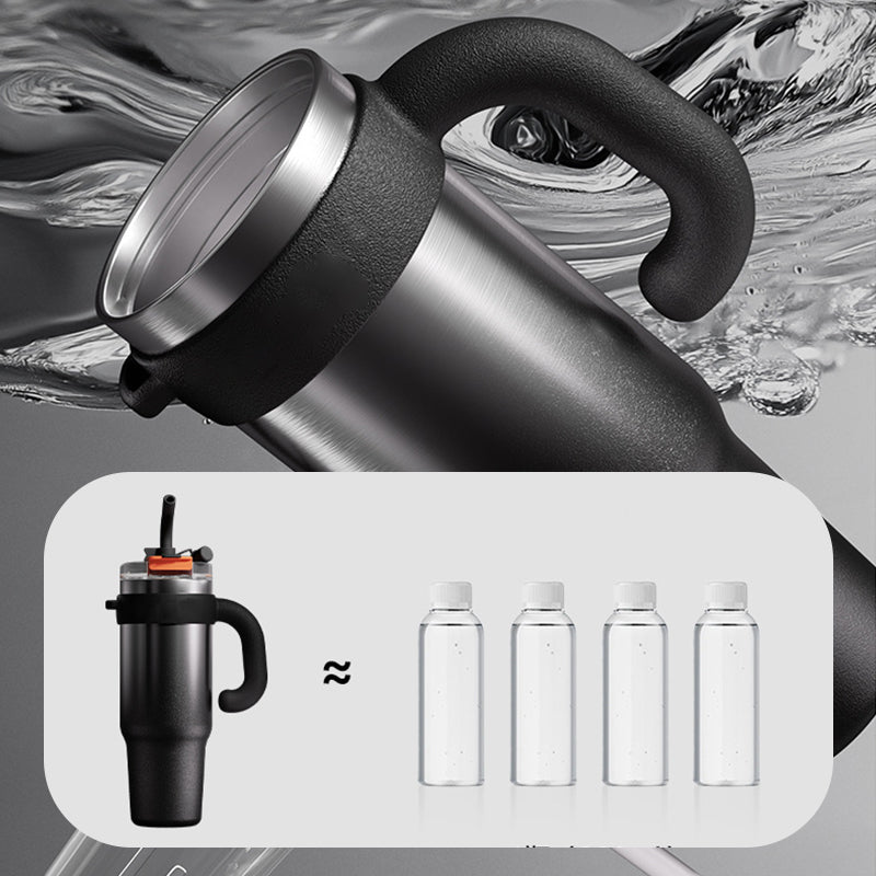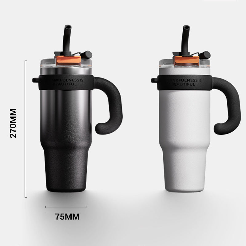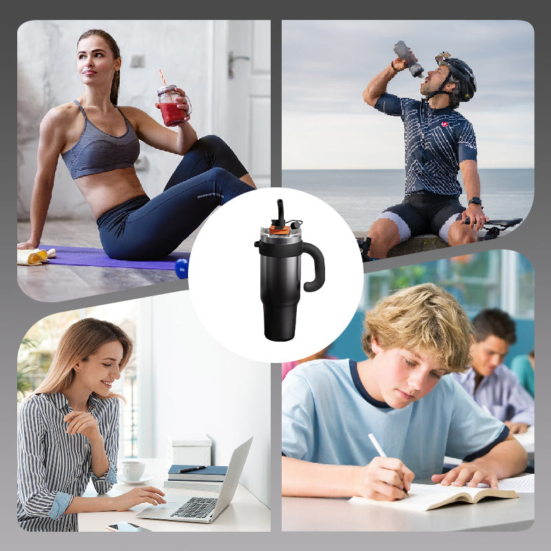 Изолационната чаша с голям капацитет събира 1200ml течност, което гарантира, че поддържате хидратацията си през целия ден. Идеална е за заети графици, активности на открито или дълги пътувания, тъй като елиминира необходимостта от често презареждане.