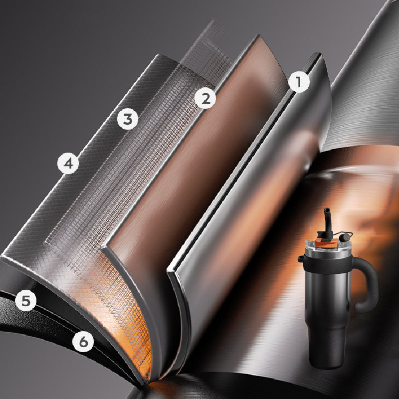 Вътрешният слой е изработен от 316L неръждаема стомана, известна с корозионната си устойчивост и издръжливост. Това гарантира, че напитките ви остават свежи без метален привкус, което я прави безопасна за топли и студени beverages.