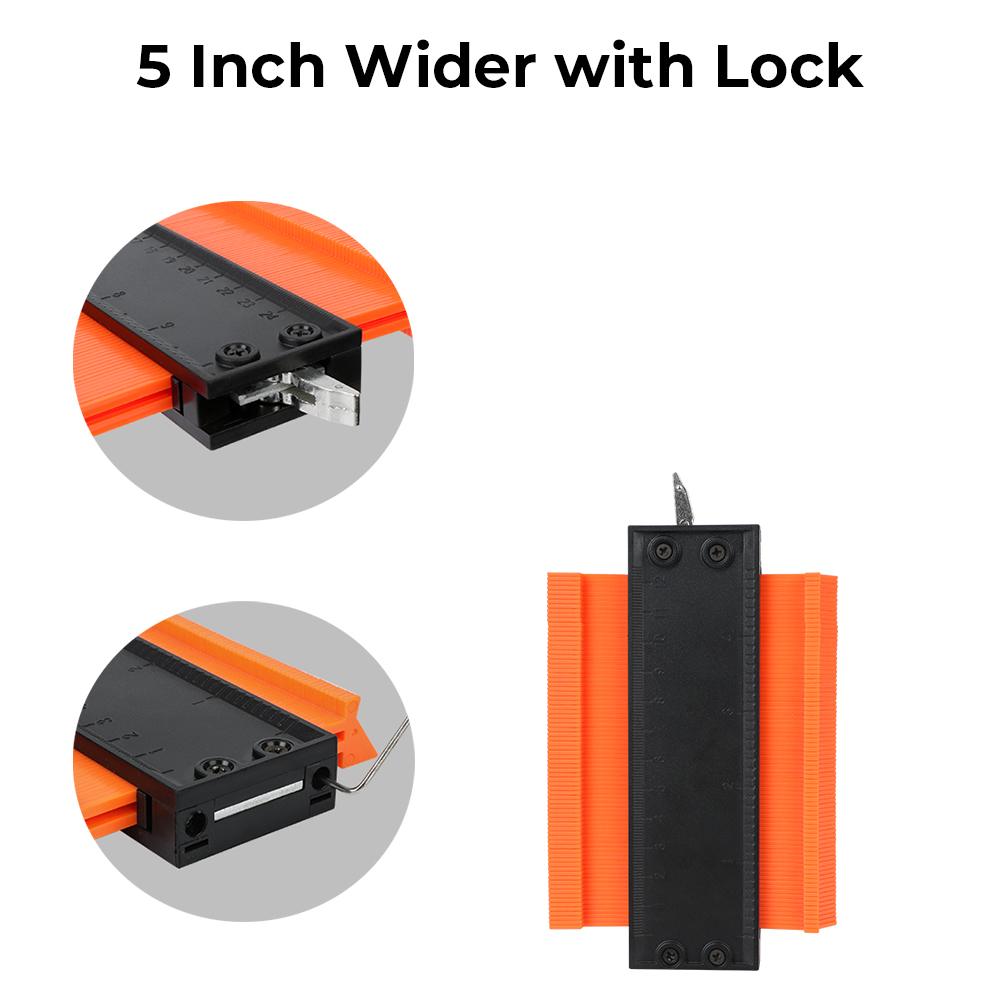 Нашият контурни измервател измерва 5 инча, 6 инча и 10 инча и може да се използва за измерване на формата на неравномерни обекти, като моментален шаблон за маркиране на прецизни разрези на плочки. Просто натиснете контурния измервател върху една от формите. Изрежете контура и го изрежете по форма.