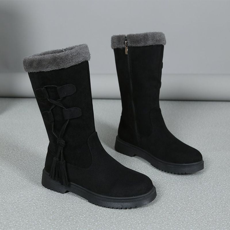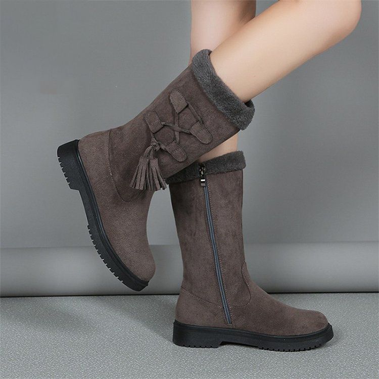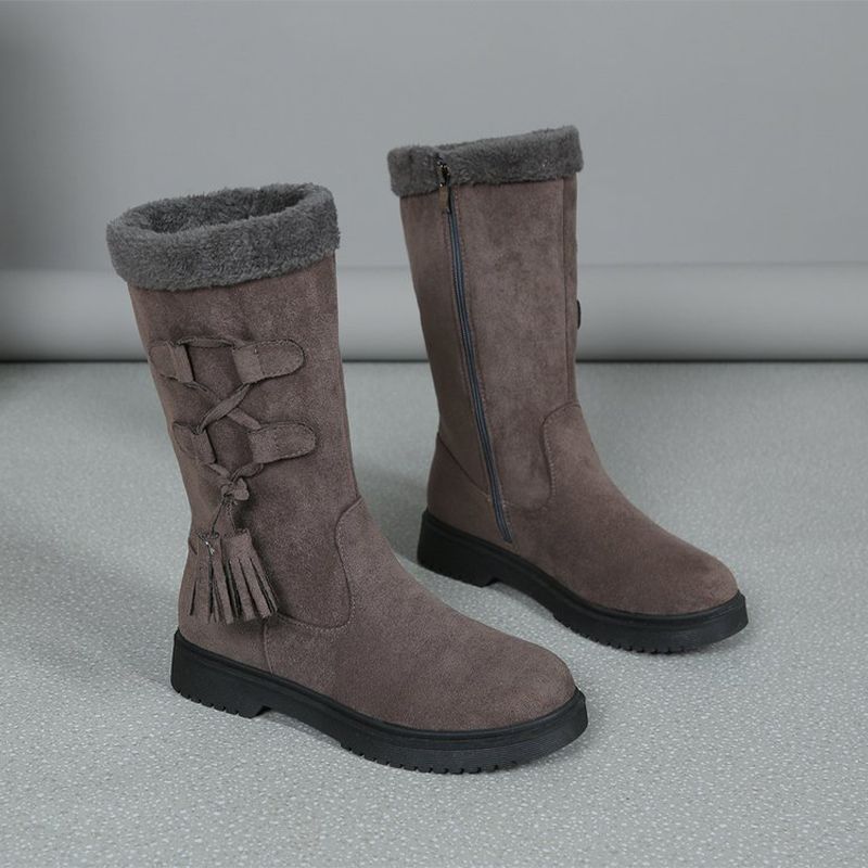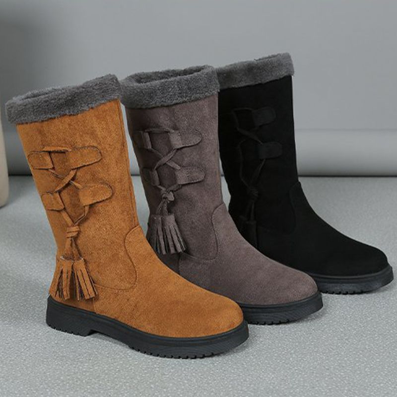 Пакетът включва: 1 * Дамски дебели плюшени топли зимни ботуши до средата на прасеца с дебели подметки