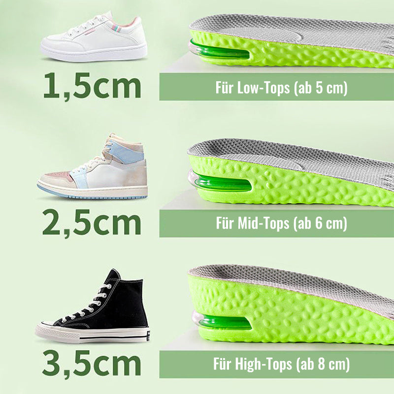 НЕВИДИМО ПОВИШАВАНЕ НА ПЕТАТА: Увеличете височината си мигновено с множество опции, подходящи за различни стилове обувки. Издръжливата въздушна възглавница осигурява дискретно, невидимо повдигане, което не се срива, гарантирайки уверена стойка през целия ден.