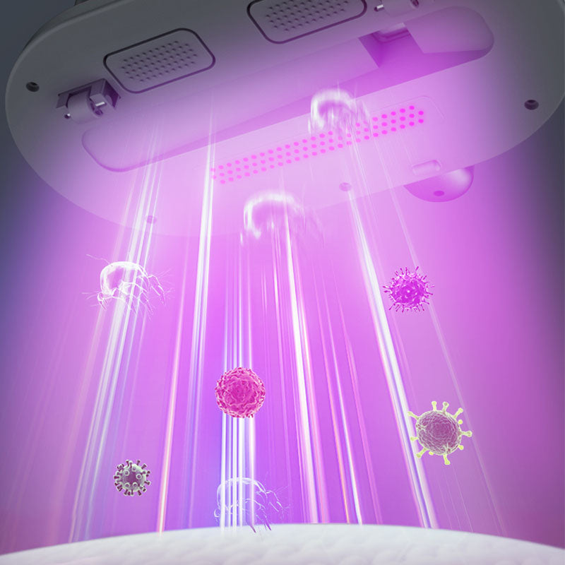- UV-C ултравиолетови лъчи, които проникват през повърхностния слой за бързо обезцветяване и стерилизация.