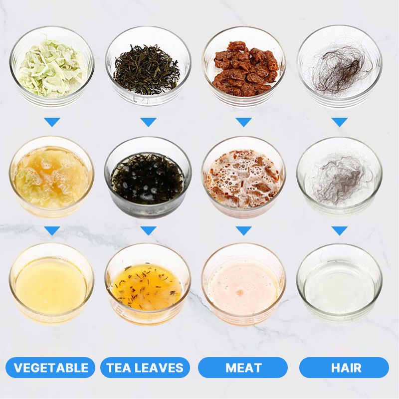 Мощна функция: Може бързо да разтваря запушванията в тръбите, като коса, хартия, сапунени остатъци, зеленчуци, плодове, хранителни остатъци, мазнини, месо и органични вещества.
