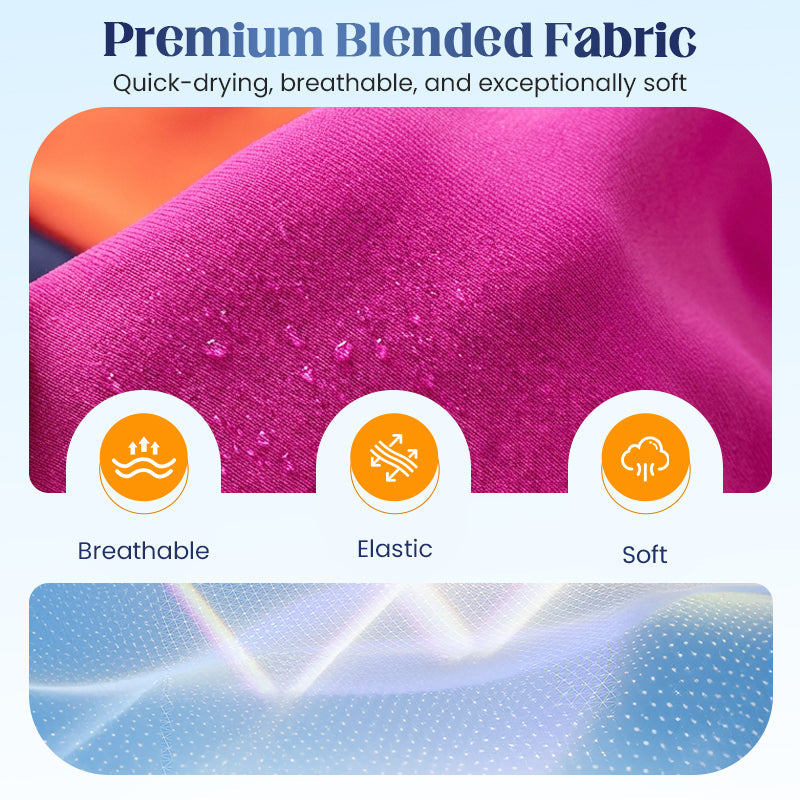 ПРЕМИУМ СМЕСЕНА ТКАН - Изработена от висококачествена смес от полиестер и спандекс. Този материал е бързосъхнещ, дишащ и изключително еластичен, осигуряващ максимален комфорт и свобода на движение, независимо дали плувате, се печете на слънце или играете плажен волейбол.