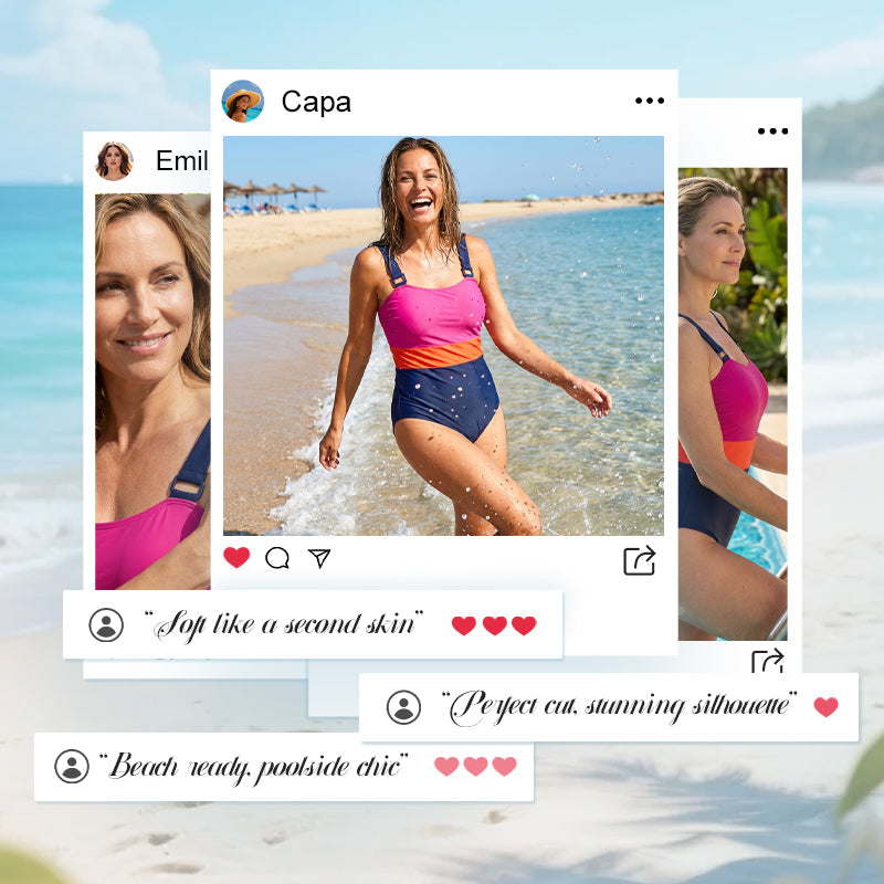 ИЗЯЩНА СИЛУЕТА - Професионално проектирана, за да изглажда и оформя талията ви. Продуман дизайнът осигурява лек контрол на коремната област, като предлага елегантен и изтънчен профил, който повишава самочувствието ви на басейна или на плажа.